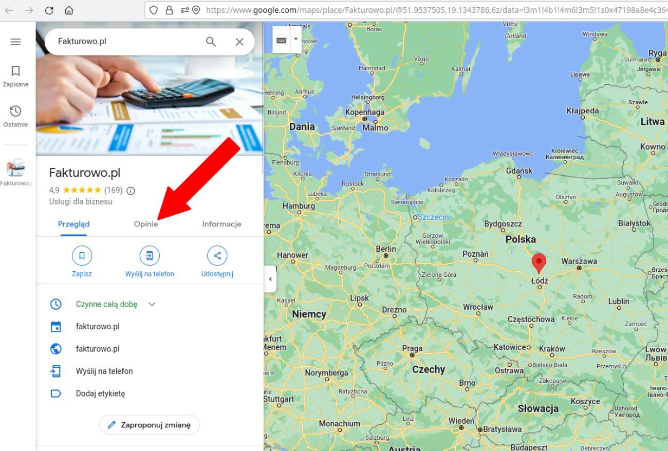 Wystawienie opinii jest bardzo proste. Wystarczy wejść na stronę naszej wizytówki w Google Maps - https://g.page/fakturowo